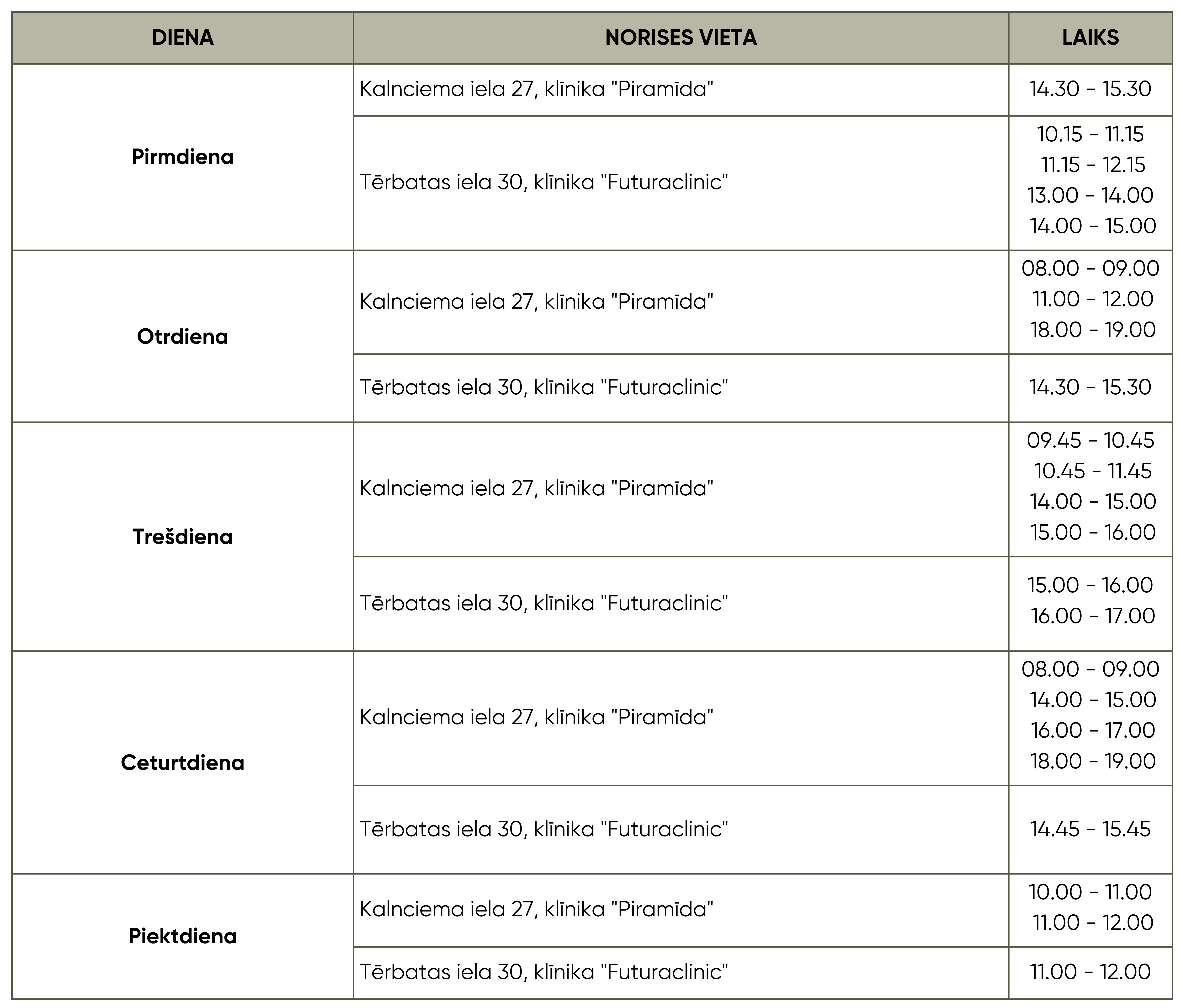 - klīnika “FuturaClinic”, Tērbatas iela 30, Rīga.