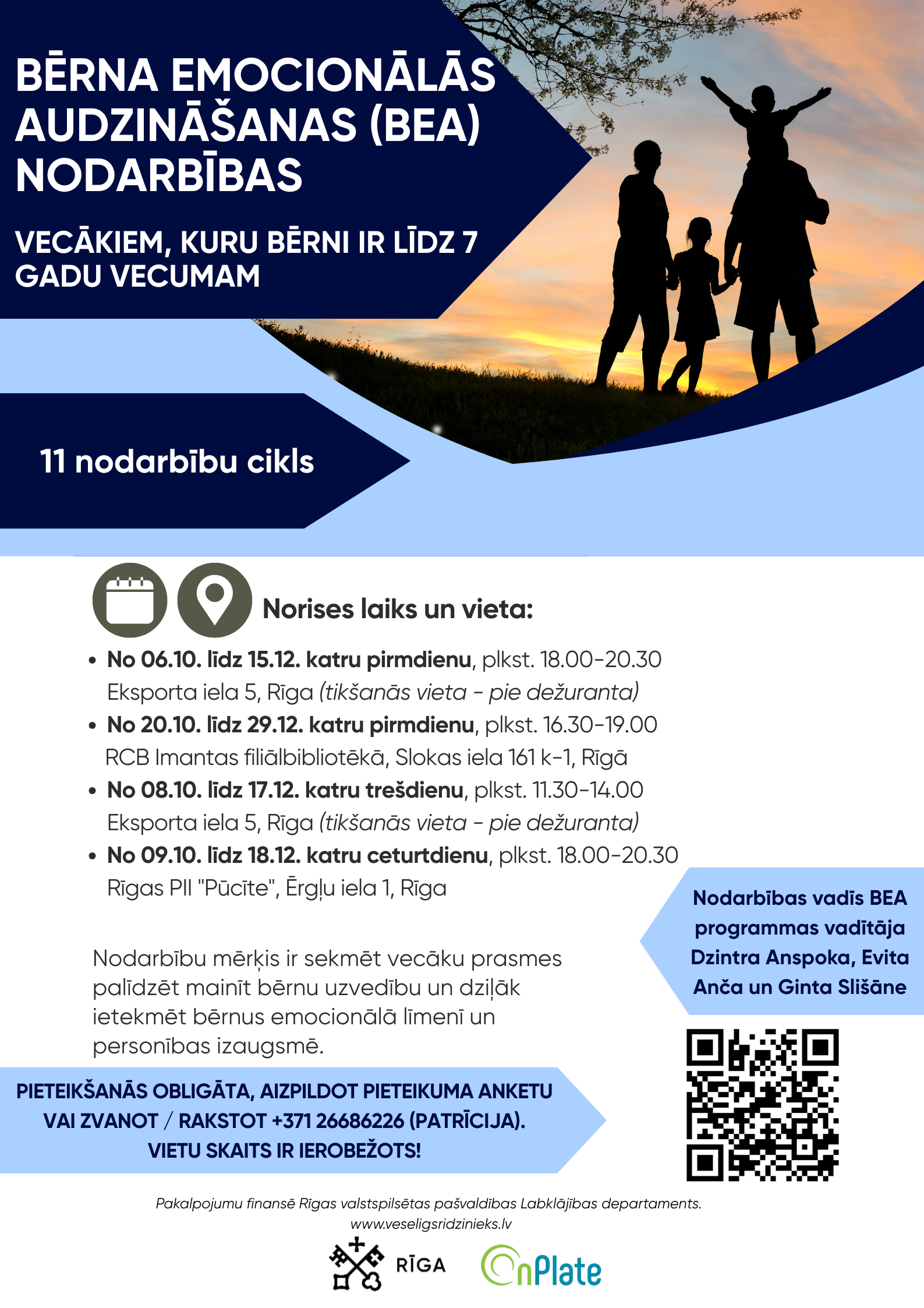 Rīgas valstspilsētas pašvaldības (RVP) Labklājības departaments sadarbībā ar SIA “OnPlate” aicina pieteikties uz BEZMAKSAS 11 nodarbību ciklu vecākiem ar mērķi pilnveidot zināšanas un prasmes par bērnu agrīno psihoemocionālo attīstību un drošas vides veidošanas veicināšanu bērna attīstībai.