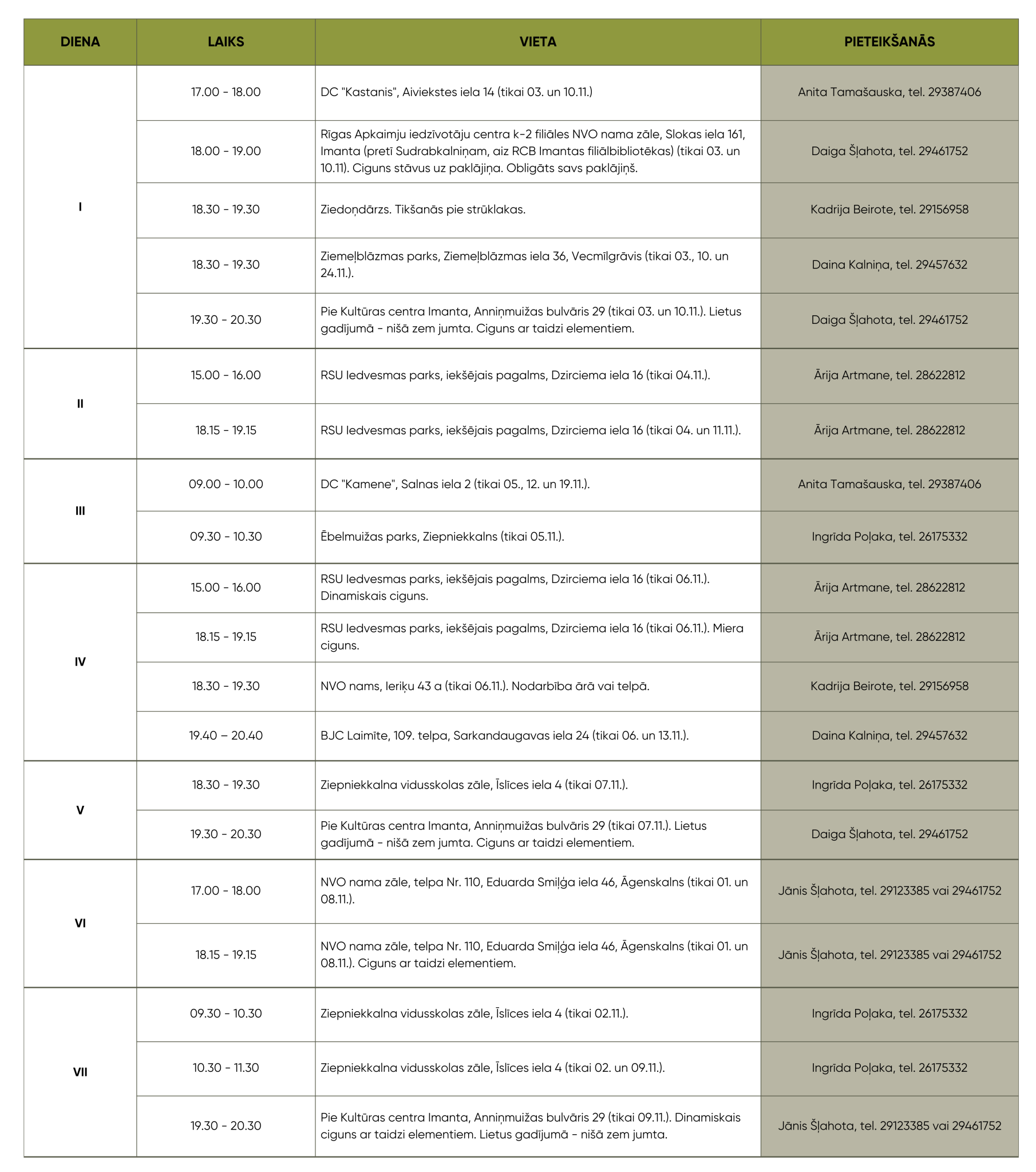 Arī novembrī Rīgas valstspilsētas pašvaldības (RVP) Labklājības departaments aicina apmeklēt bezmaksas ciguna nodarbības!