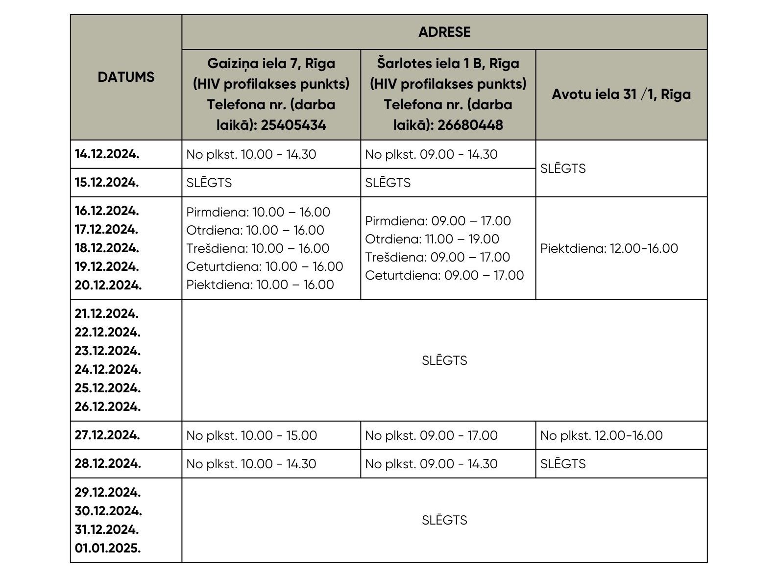Informējam par darba laika izmaiņām Veselības istabās 2024. gada nogalē svētku periodā!