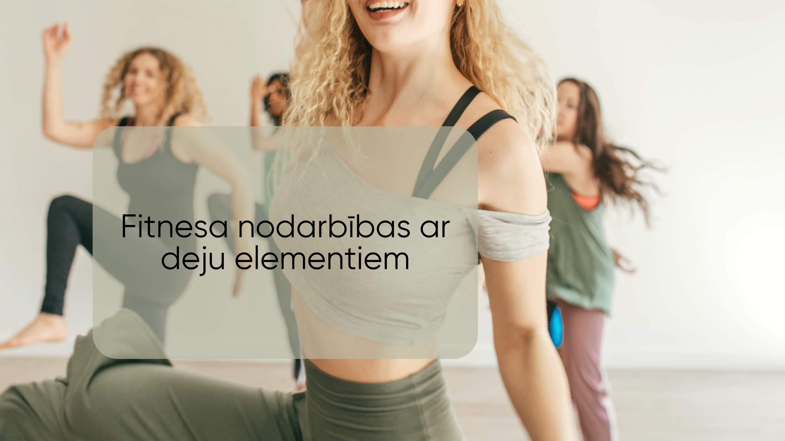 Fitness ar deju elementiem ir enerģiskas nodarbības Latīņamerikas un pasaules ritmos, kas apvieno visus galvenos fitnesa elementus – kardio, muskuļu trenēšanu, līdzsvaru, lokanību un koordināciju.