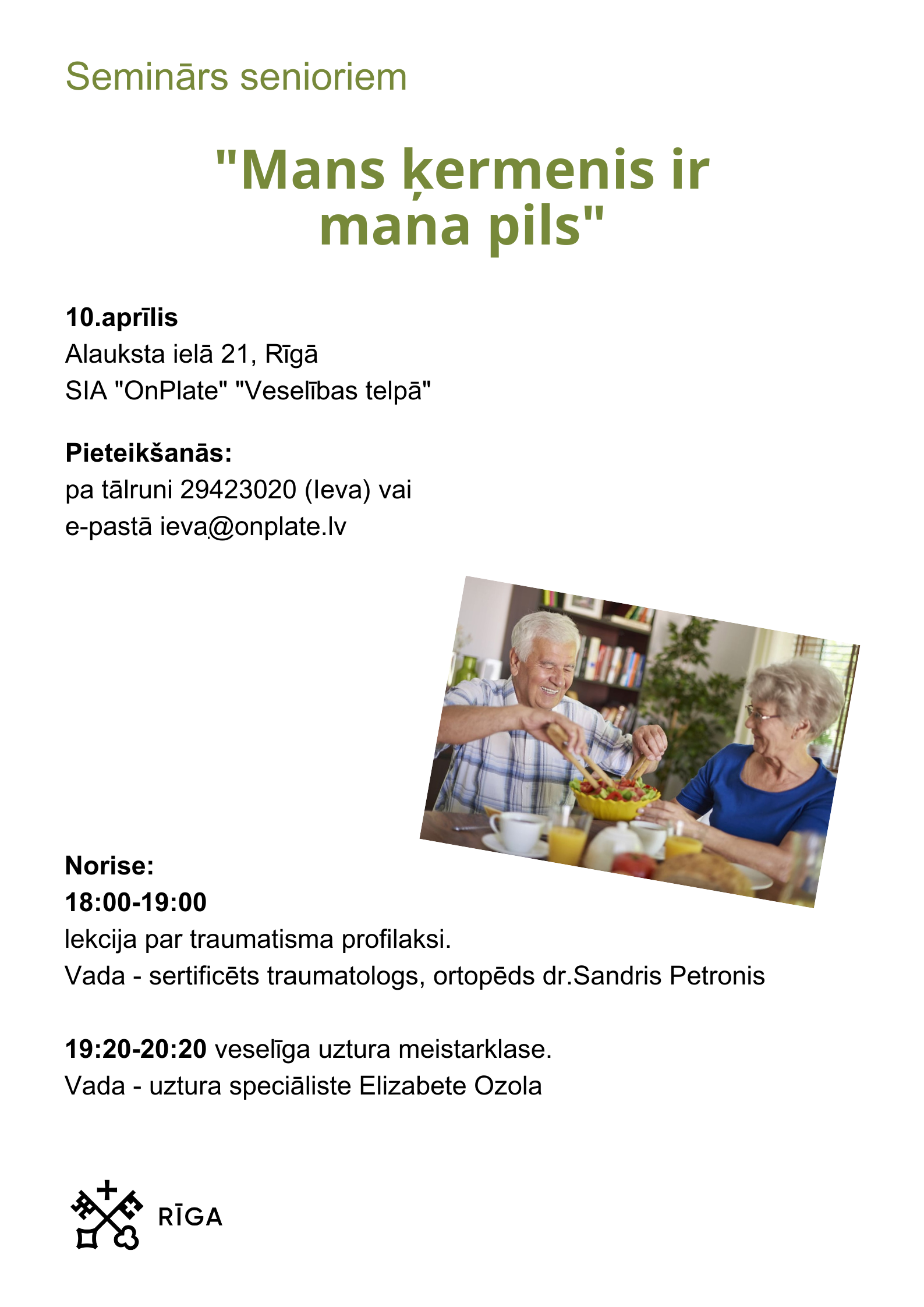 Vairāk informācijas – 10. aprīlī notiks bezmaksas seminārs par traumatisma profilaksi un veselīga uztura meistarklase – Veselīgs rīdzinieks veselā Rīgā (veseligsridzinieks.lv)