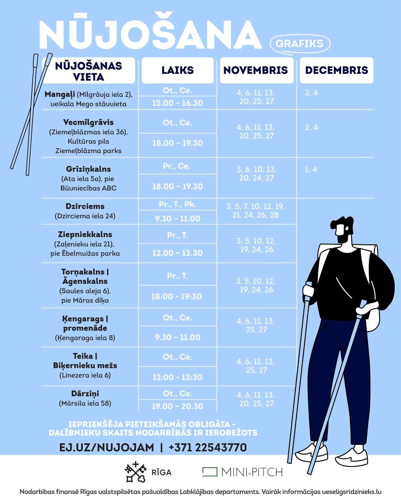 Rīgas valstpilsētas pašvaldības Labklājības departaments sadarbībā ar biedrību “Mini-pitch” aicina iedzīvotājus piedalīties bezmaksas nūjošanas nodarbībās novembrī un decembrī!