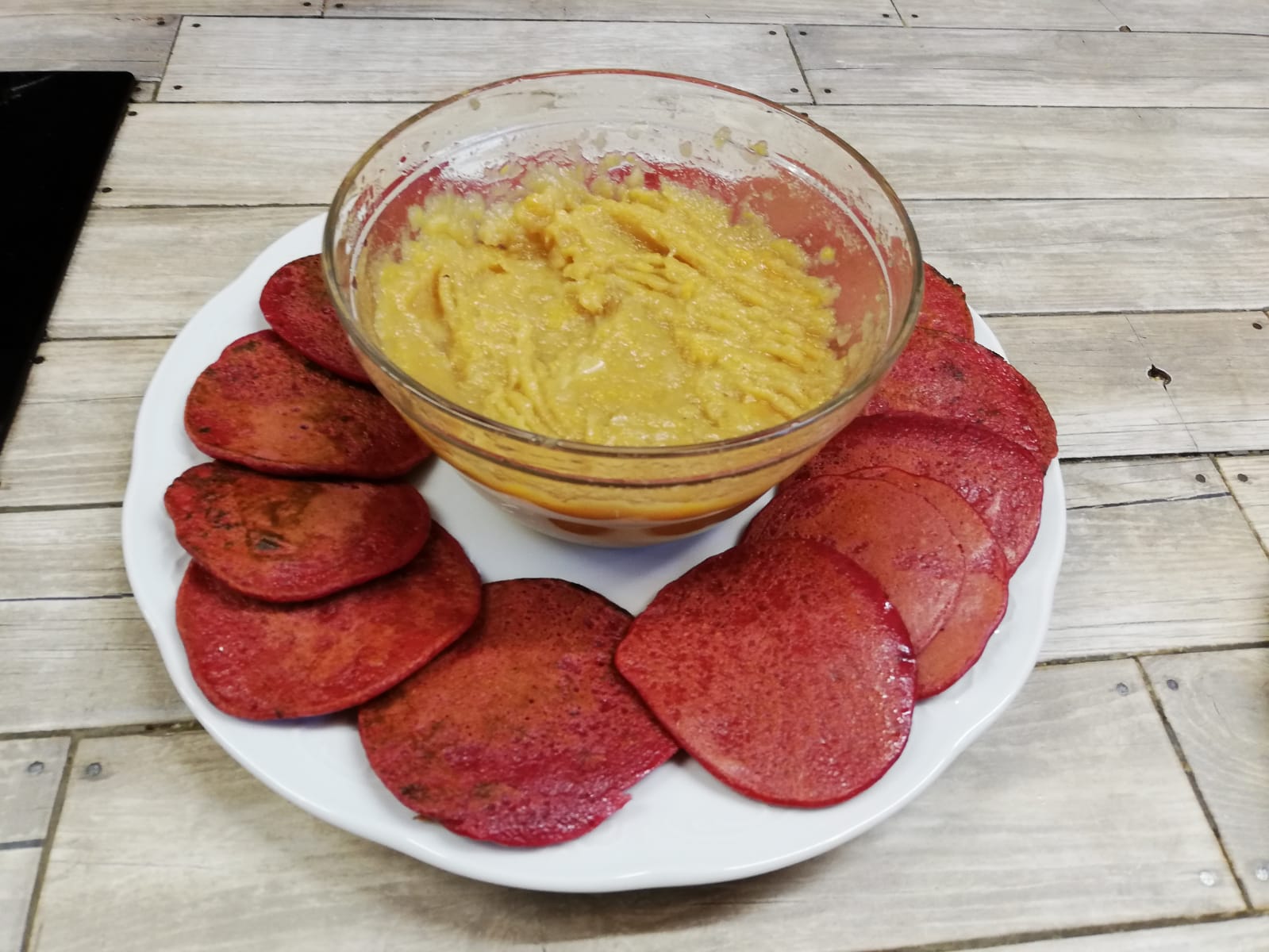 Topinambūru kraukšķīgās pankūkas ar valriekstu pesto