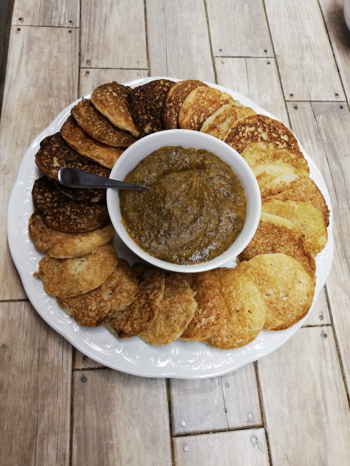 Rauga pankūkas marokāņu gaumē ar ķirbju-čia sēklu džemu