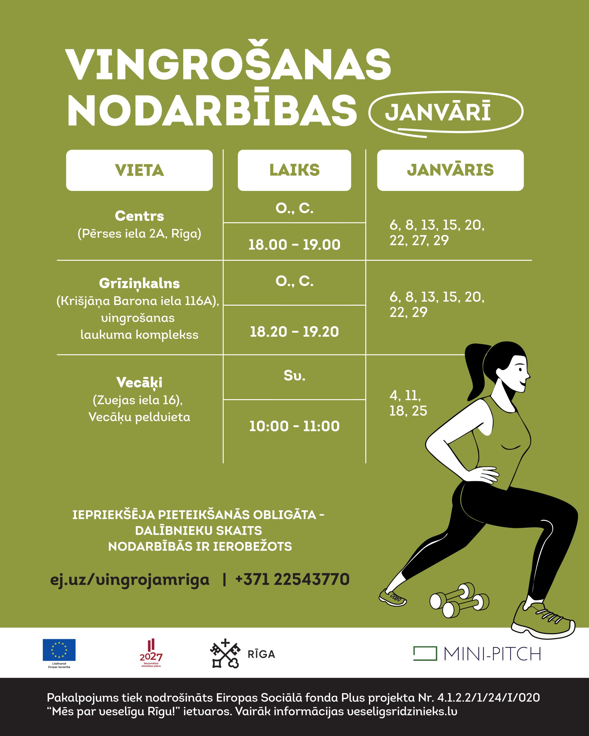 - Dalība nodarbībās ir bezmaksas.