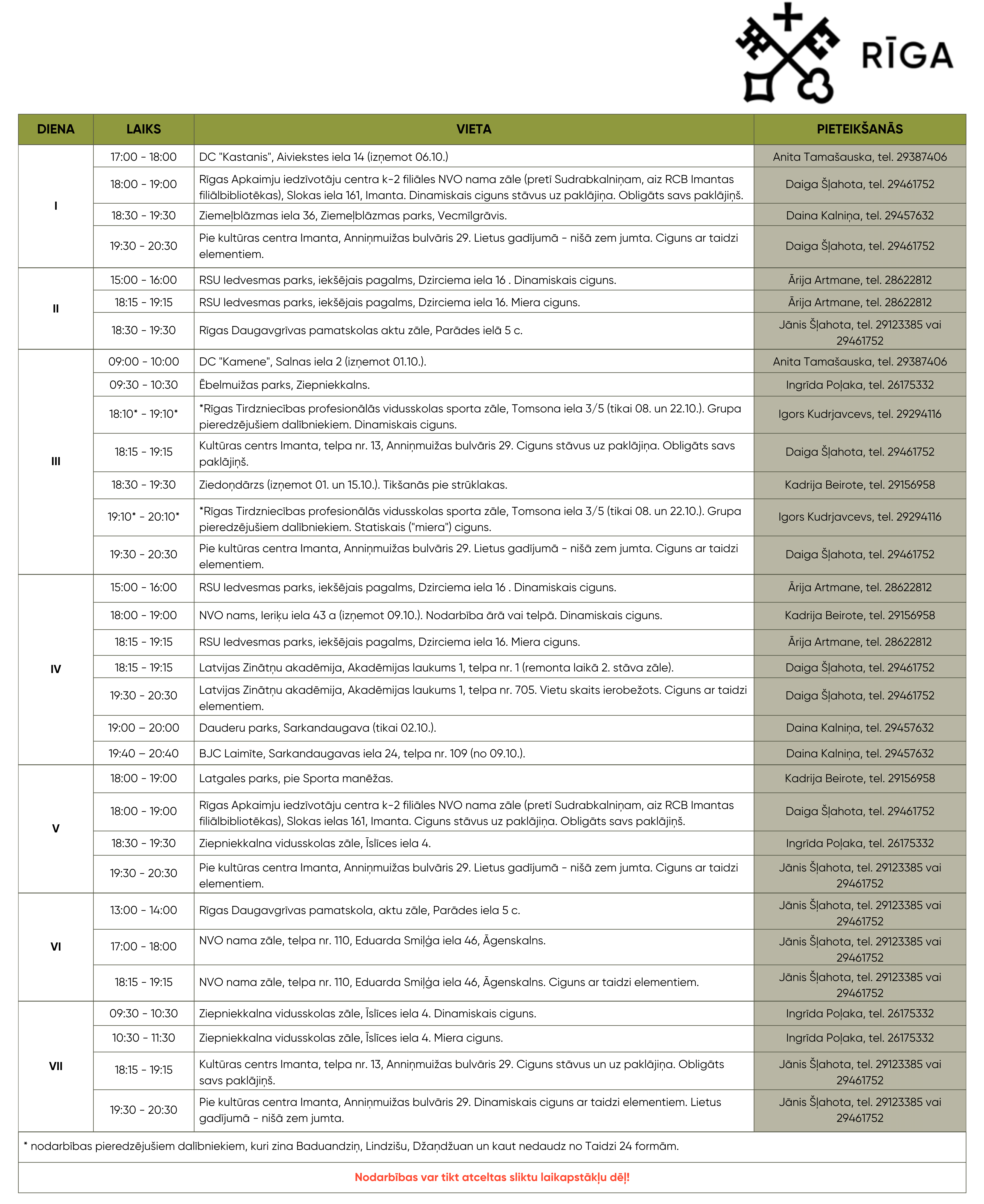 Iepriekšēja pieteikšanās IR OBLIGĀTA, jo vietu skaits katrā nodarbībā ir ierobežots!