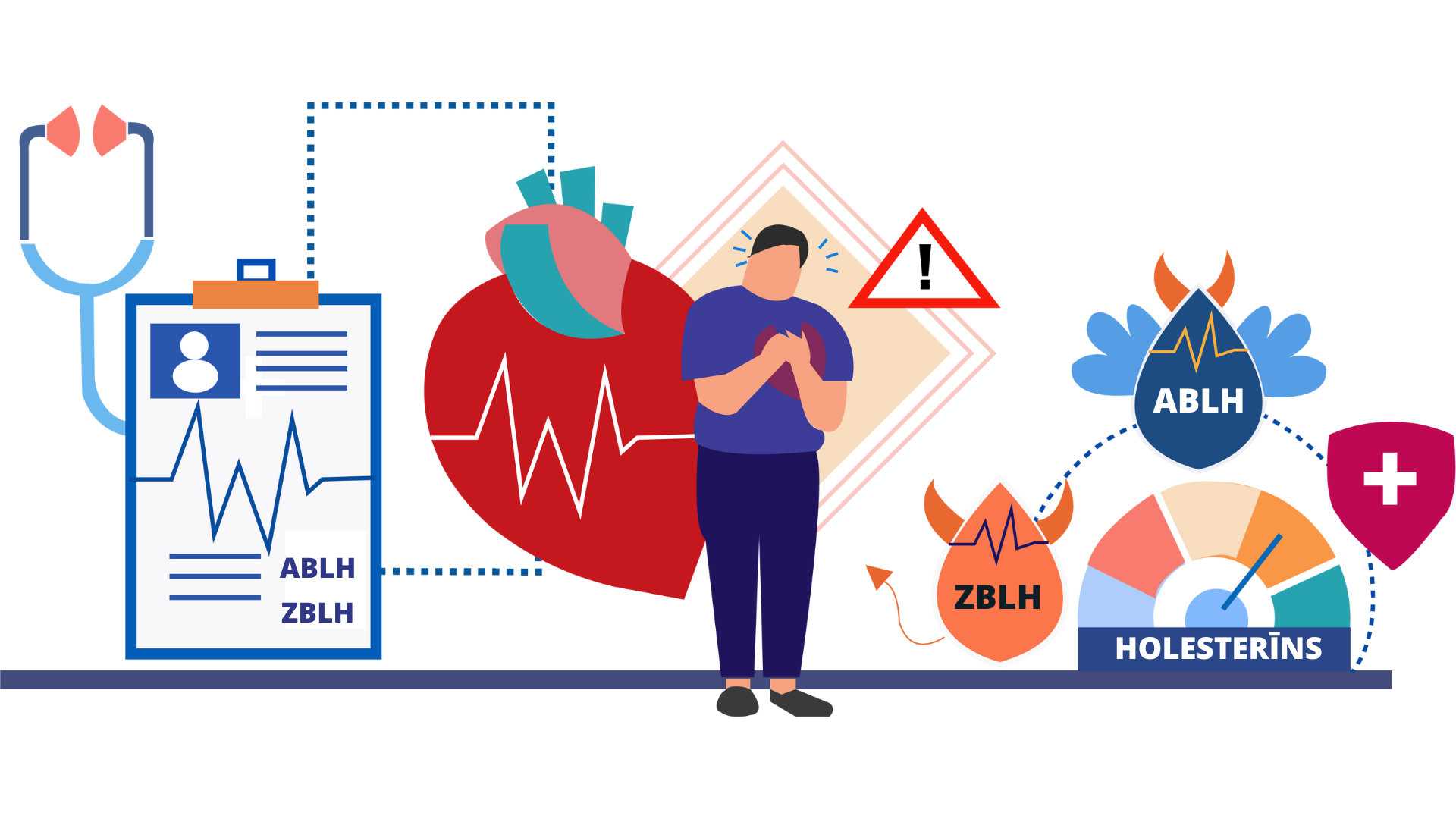 Tā kā holesterīns un citi tauki asinīs nešķīst – pa asinsrites sistēmu to pārnēsā “palīgi” proteīni – lipoproteīni (tauki savienojumā ar taukvielām jeb lipīdiem). Mūsu organismā lipoproteīni var būt gan zema, gan augsta bīvuma. Zema blīvuma lipoproteīnu holesterīns (saīsinājumā – ZBLH) nonāk šūnās, savukārt augsta blīvuma lipoproteīnu holesterīns (ABLH, saukts par “labo” holesterīnu) – ceļo tālāk uz aknām, kur tiek sašķelts, un tālāk izvadīts no organisma. Tātad “labais” holesterīns samazina holesterīna nogulsnes. Ja tiek traucēta holesterīna vielmaiņa un “sliktā” holesterīna ir par daudz, tas sāk izgulsnēties asinsvados. Izgulsnējoties sirds un citās artērijās, tās var tikt nosprostotas, izraisot infarktu un citas komplikācijas. Holesterīns ir arī galvenais aterosklerozes (slimība, kas izraisa miokarda infarktu, insultu un pēkšņu nāvi) cēlonis, tādēļ vissvarīgākais ir samazināt tieši „slikto“ jeb zema blīvuma lipoproteīnu līmeni (ZBLH). Vienīgais veids, kā noskaidrot savu holesterīna līmeni, ir veikt asins analīzes. Dodoties pārbaudīt savu holesterīna līmeni organismā, testos tiek noteikti četri rādītāji: