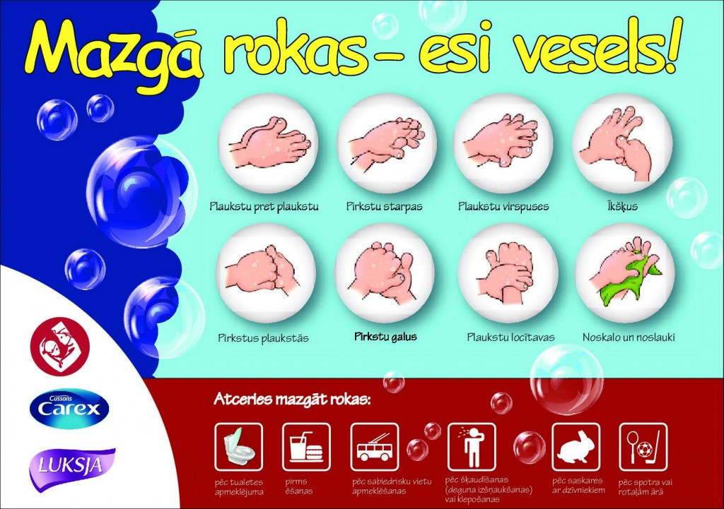 Vizuālam ieskatam piedāvājam ielūkoties arī Rīgas domes Labklājības departamenta, Bērnu klīniskās universitātes slimnīcas un citu atbalstītāju izstrādātās kampaņas materiālos, kas tapuši jau 2013.gadā. Tās ietvaros izveidots gan video ar galvenajām roku mazgāšanas kustībām, gan roku mazgāšanas dziesma, kas šo procesu par atraktīvu un interesantu nodarbi var padarīt arī pašiem mazākajiem.